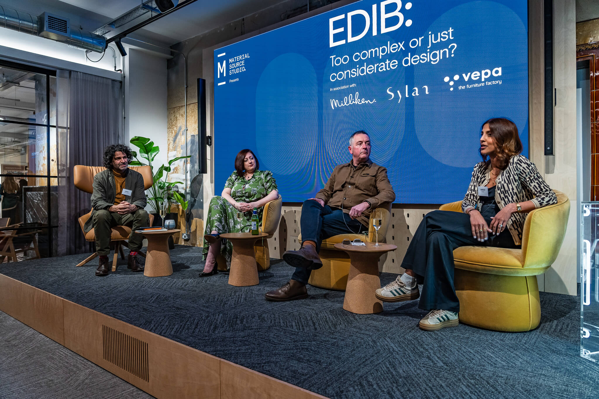 Chaired by Material Source Director David Smalley, the session brought together leading voices from workplace strategy, property and design to examine how Equity, Diversity, Inclusion and Belonging (EDIB) is shaping the future of the workplace — and why inclusive design must move beyond acronyms and into everyday decision-making.